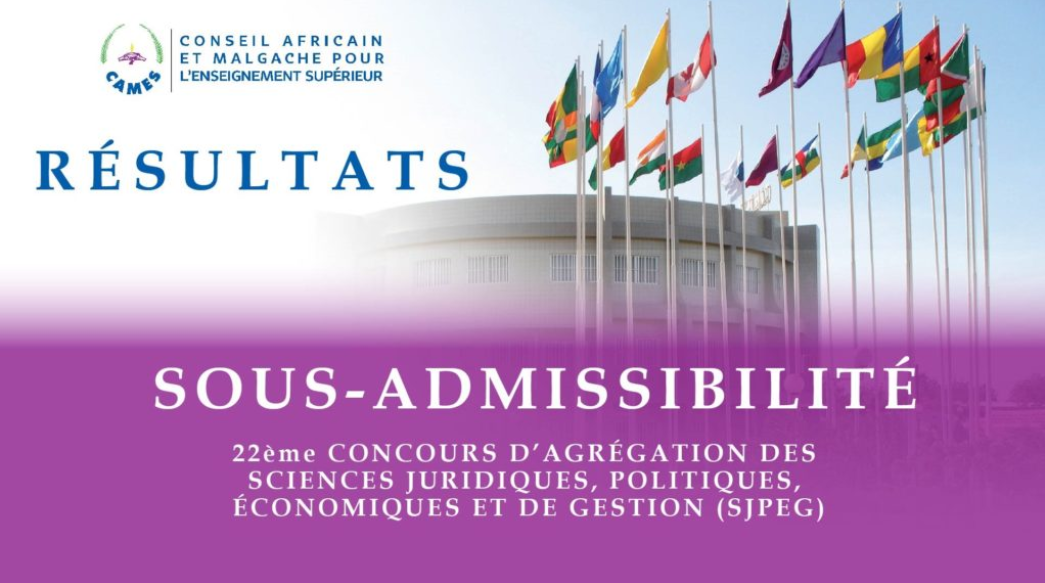 Le 22e Concours d’Agrégation des Sciences Juridiques, Politiques, Economiques et de Gestion (SJPEG) du Conseil Africain et Malgache pour l’Enseignement supérieur (CAMES) a livré les résultats de la première épreuve ce 28 octobre 2025.