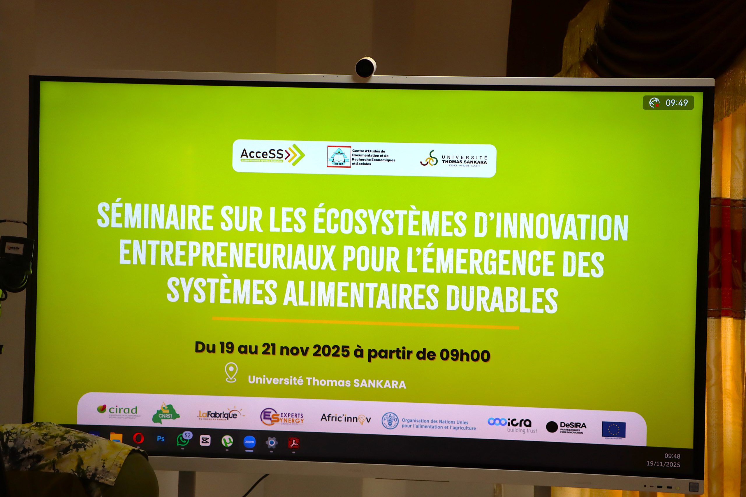L’Université Thomas SANKARA (UTS) abrite un séminaire sur « les écosystèmes d’innovation entrepreneuriaux pour l’émergence des systèmes alimentaires durables » du 19 au 21 novembre 2025. Cette rencontre scientifique est co-organisée par l’UTS à travers le Centre d’Etudes, de Documentation et de Recherche Economiques et Sociales (CEDRES), en partenariat avec les autres membres du consortium du projet ‘’Accélérer les dynamiques d’innovation dans l’agriculture par le renforcement des Services Supports à l’innovation (AcceSS)’’. La cérémonie d’ouverture de la rencontre a eu lieu ce mercredi 19 novembre 2025 sous la présidence du Délégué général du CNRST, en présence du Vice-président chargé de la Recherche et de la Coopération Internationale (VP-RCI) le Pr Florent SONG-NABA.