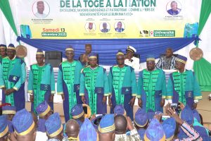 Pour rappel, la toge unique des enseignants-chercheurs, des chercheurs et des enseignants hospitalo-universitaires du Burkina Faso est conçue à 100% en cotonnade Faso Danfani et met en lumière le savoir-faire de nos valeureux producteurs de coton et de tisserands. Elle est composée essentiellement de deux principales couleurs à savoir le vert et le bleu nuit.