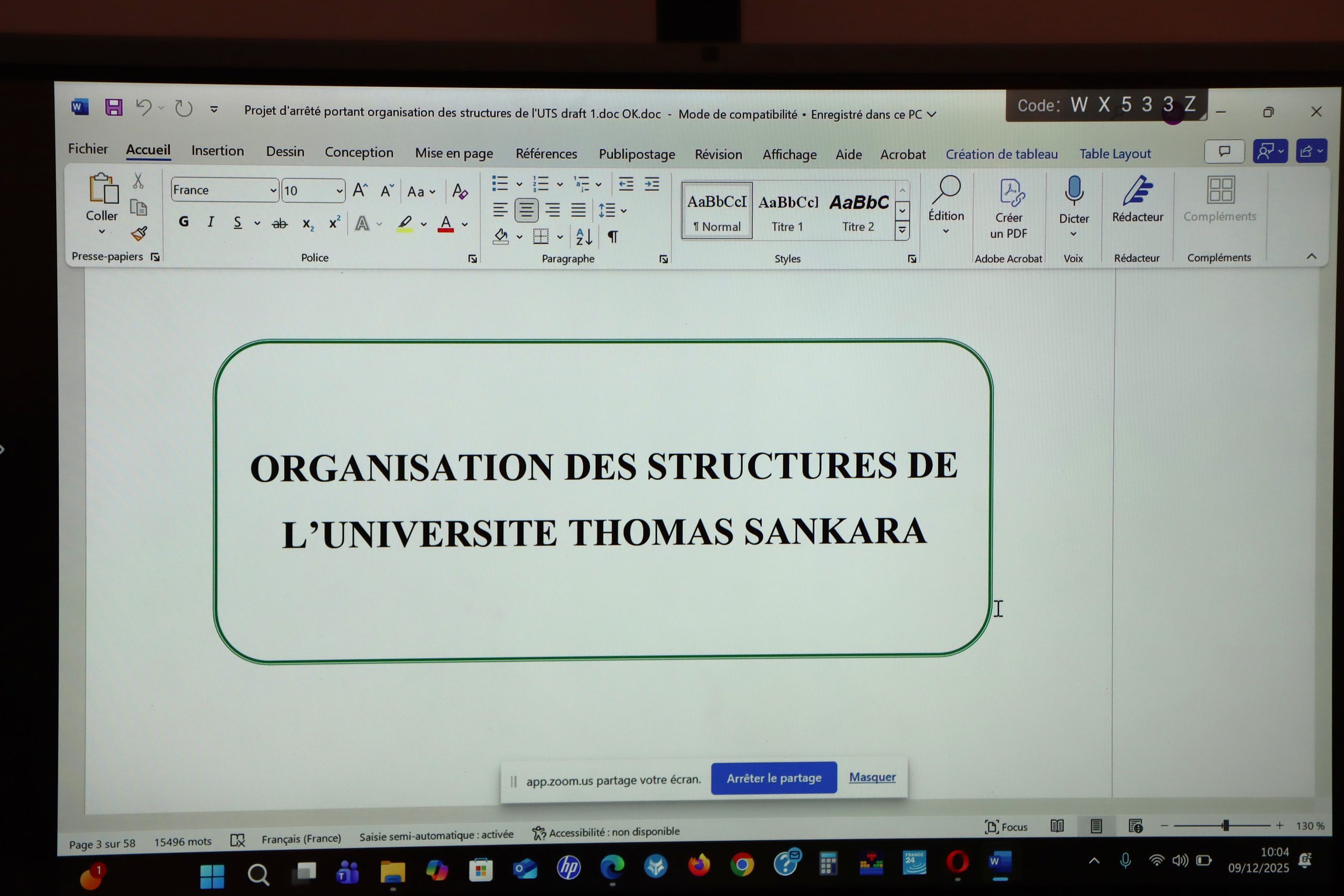 Après l’approbation des nouveaux statuts particuliers de l’Université Thomas SANKARA (UTS) par décret n°2025-1082 du 21 août 2025, l’université a entrepris la relecture du règlement intérieur et de l’arrêté portant organisation des structures ainsi que l’élaboration du projet d’arrêté portant …